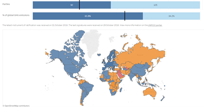Tracking the ratification progress of the Paris Agreement. In accordance with Article 21, paragraph 1, of the Paris Agreement, the Agreement shall enter into force on the 30th day after the date on which at least 55 Parties to the Convention accounting in total for at least an estimated 55 % of the total global greenhouse gas emissions have deposited their instruments of ratification, acceptance, approval or accession with the Depositary. It entered into force on 4 November 2016.