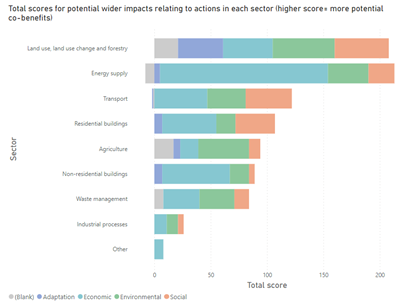 Data in our wider impacts database is summarised in these interactive visualisations of climate actions and their co-benefits.